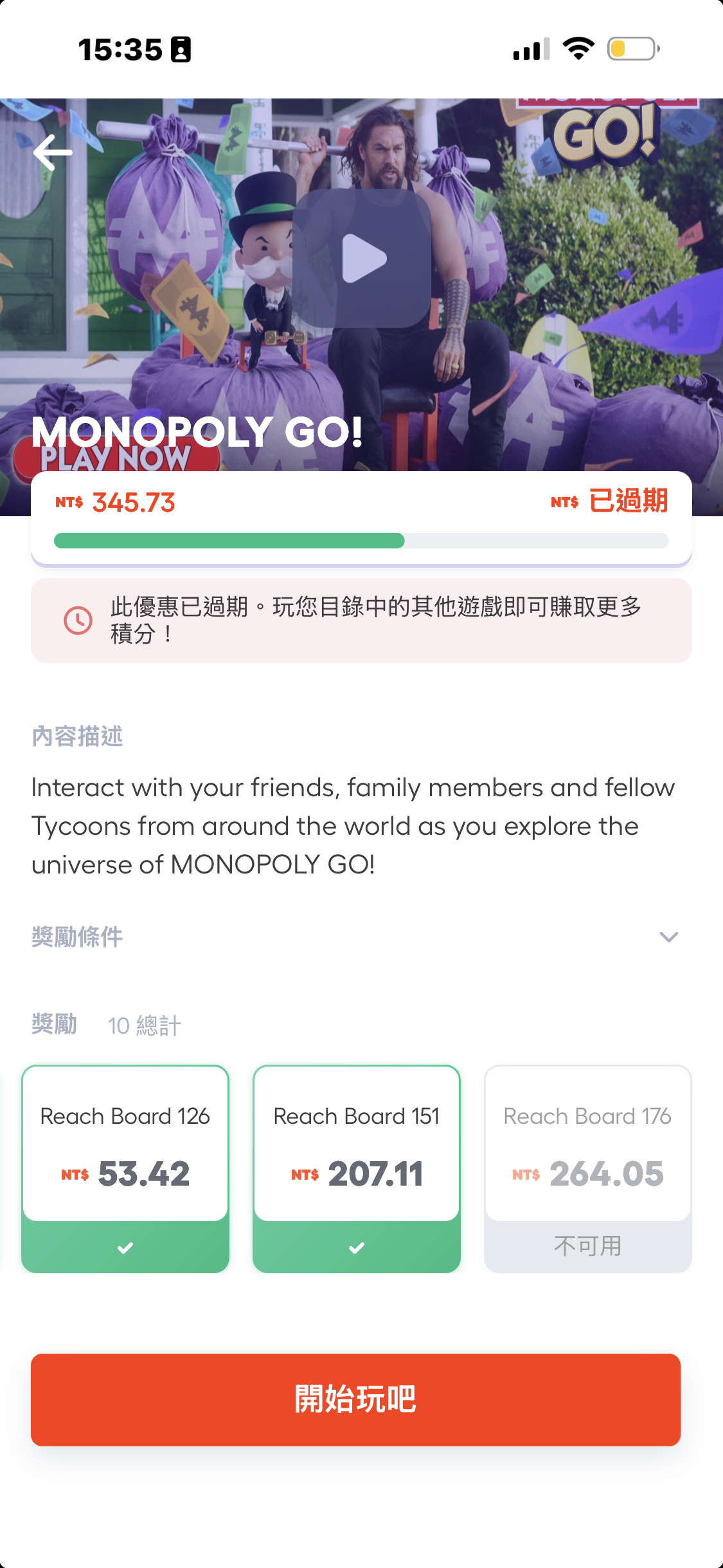 - Monopoly Go! 賺 $345.73元